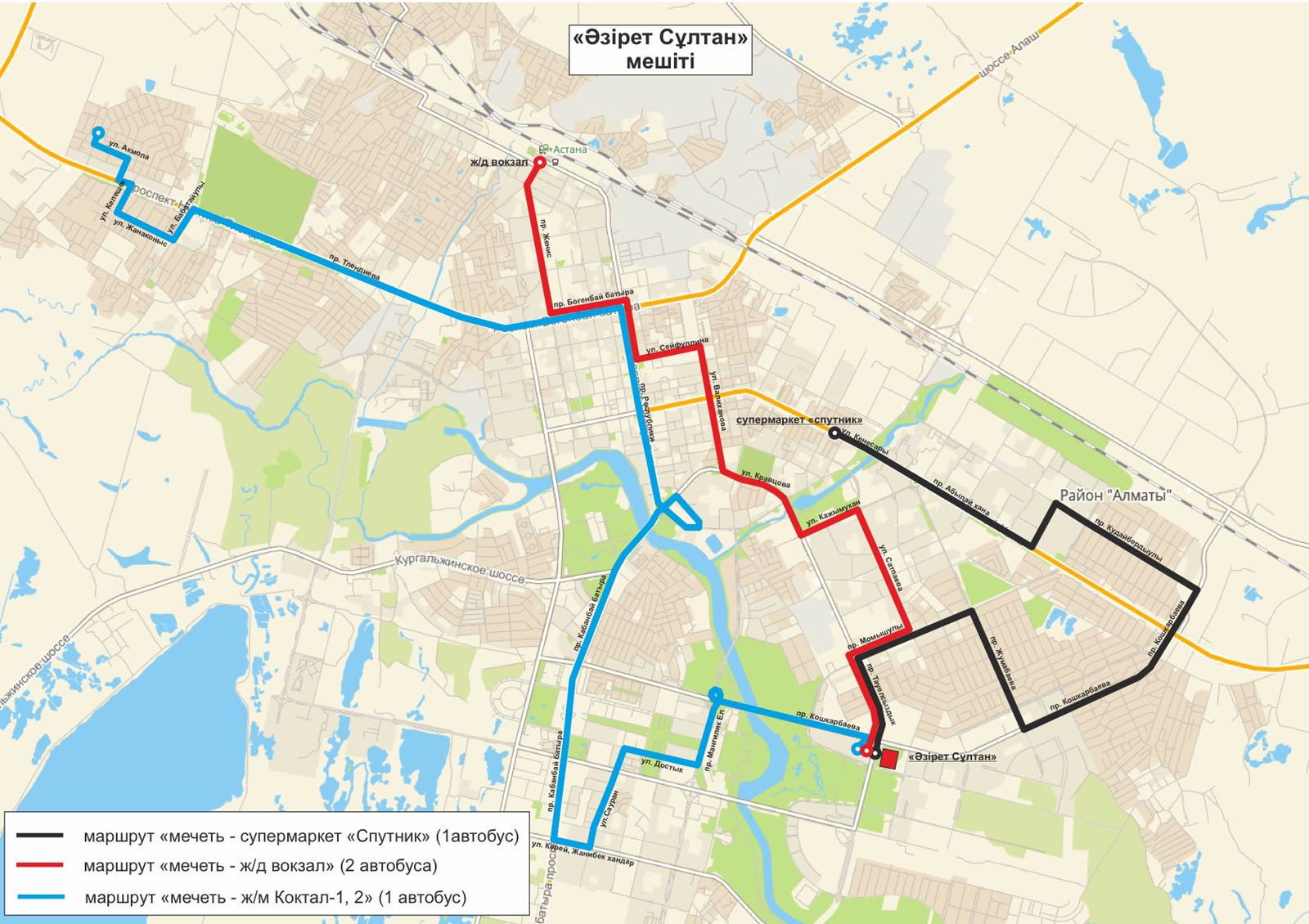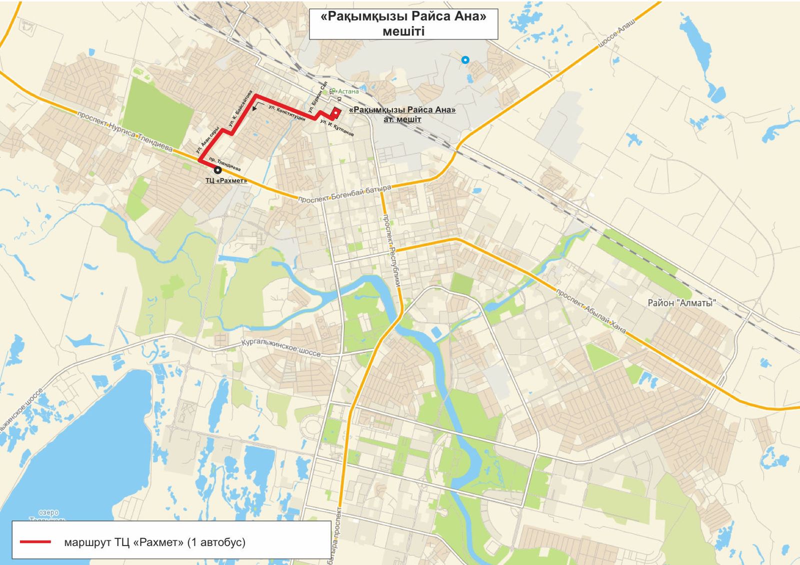 «Рақымқызы Райса ана» мешітінен жүретін бағдардың бағыты: