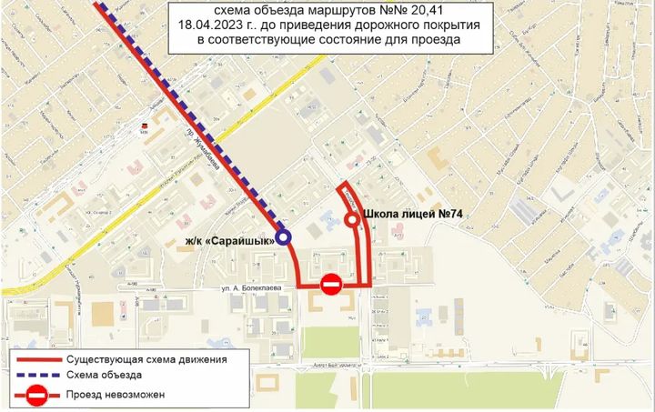 Жол жабыны қалпына келтірілгенге дейін, №№ 3, 20, 41 бағдарларының қозғалыс сызбасы уақытша өзгерді