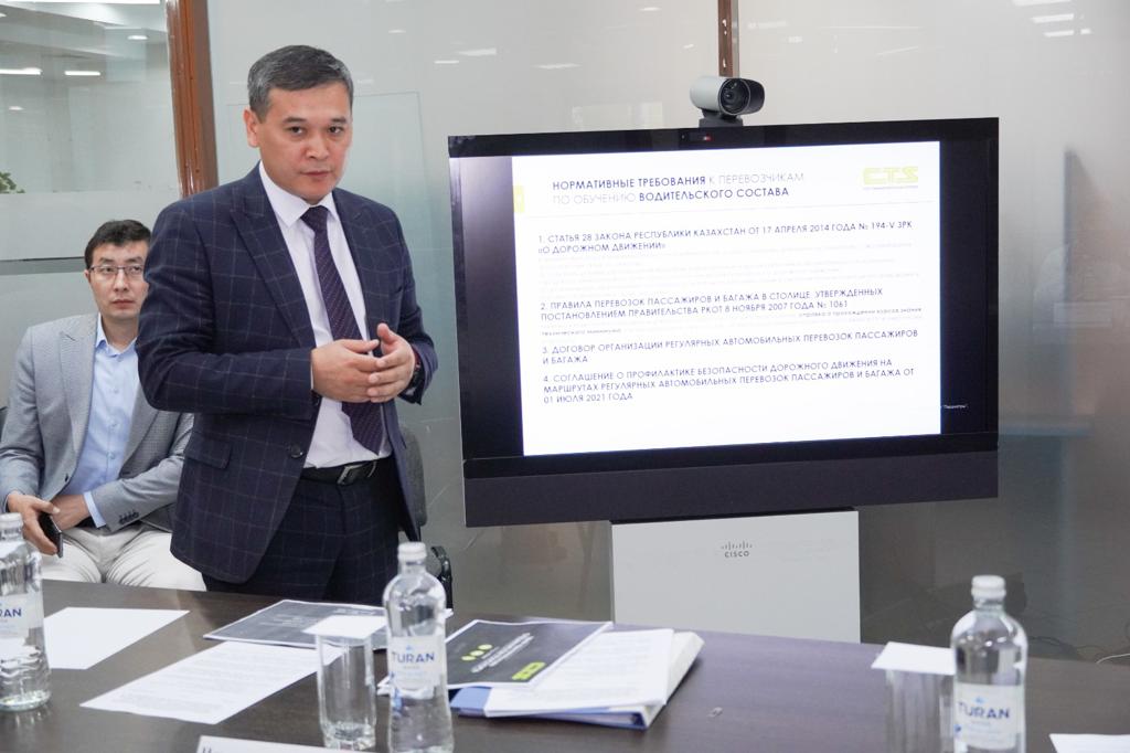 Сегодня под руководством Председателя Правления ТОО CTS Тажиева Г.Ж. прошло совместное рабочее совещание с участием заместителя начальника Управления административной полиции ДП г. Астаны, руководителя ГУ «Инспекция транспортного контроля по городу Астана», руководителей автобусных парков столицы, инженеров безопасности движения парков и структурных подразделений Товарищества.