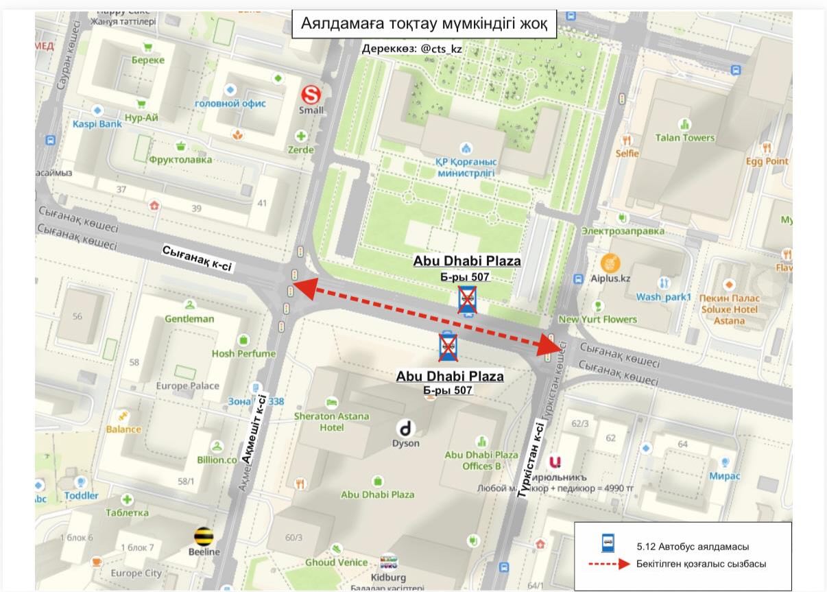 Маршрут № 507 временно не осуществляет посадку/ высадку пассажиров на остановочном пункте «Abu Dhabi Plaza»