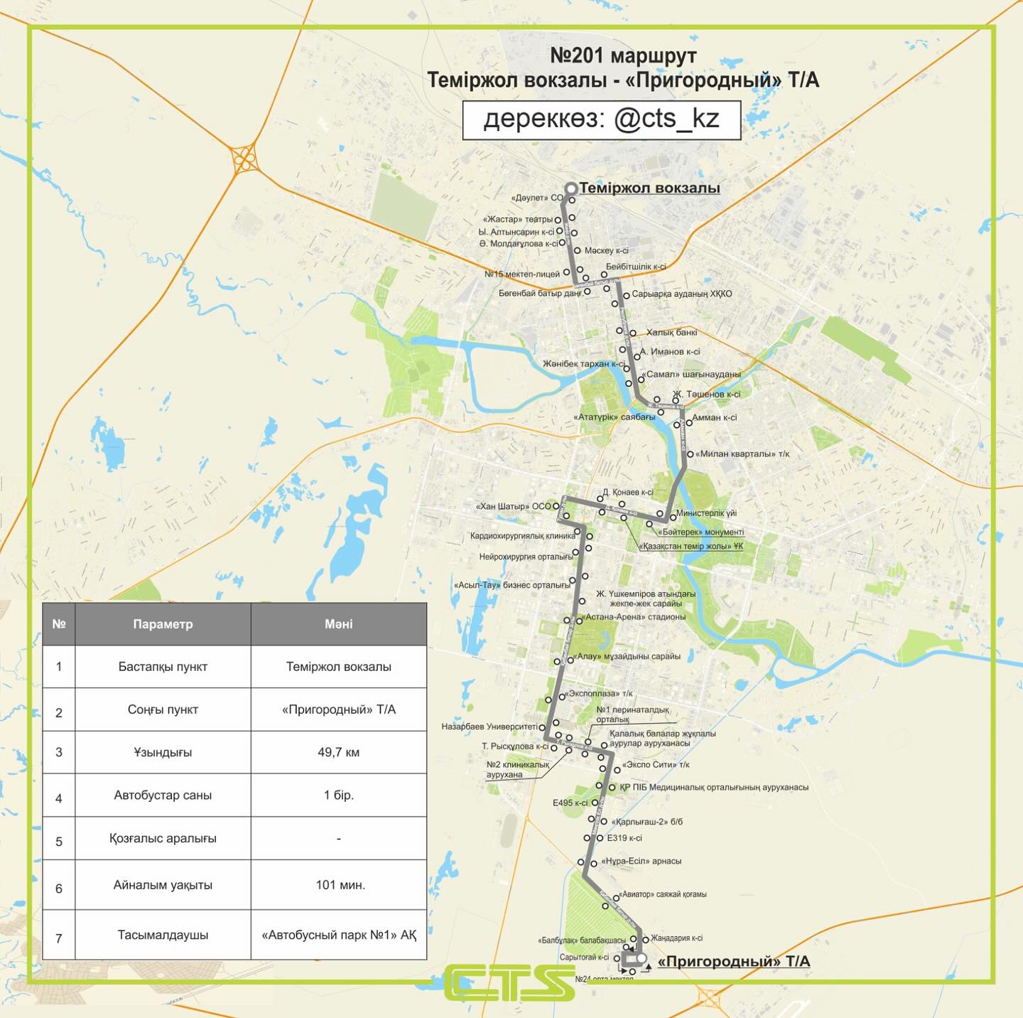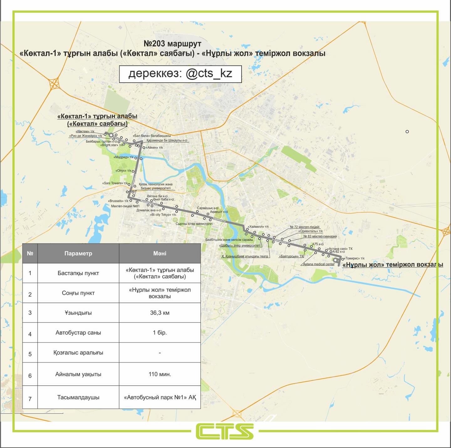 Маршрут № 203: Жилой массив «Коктал-1» - Железнодорожный вокзал «Нұрлы жол».