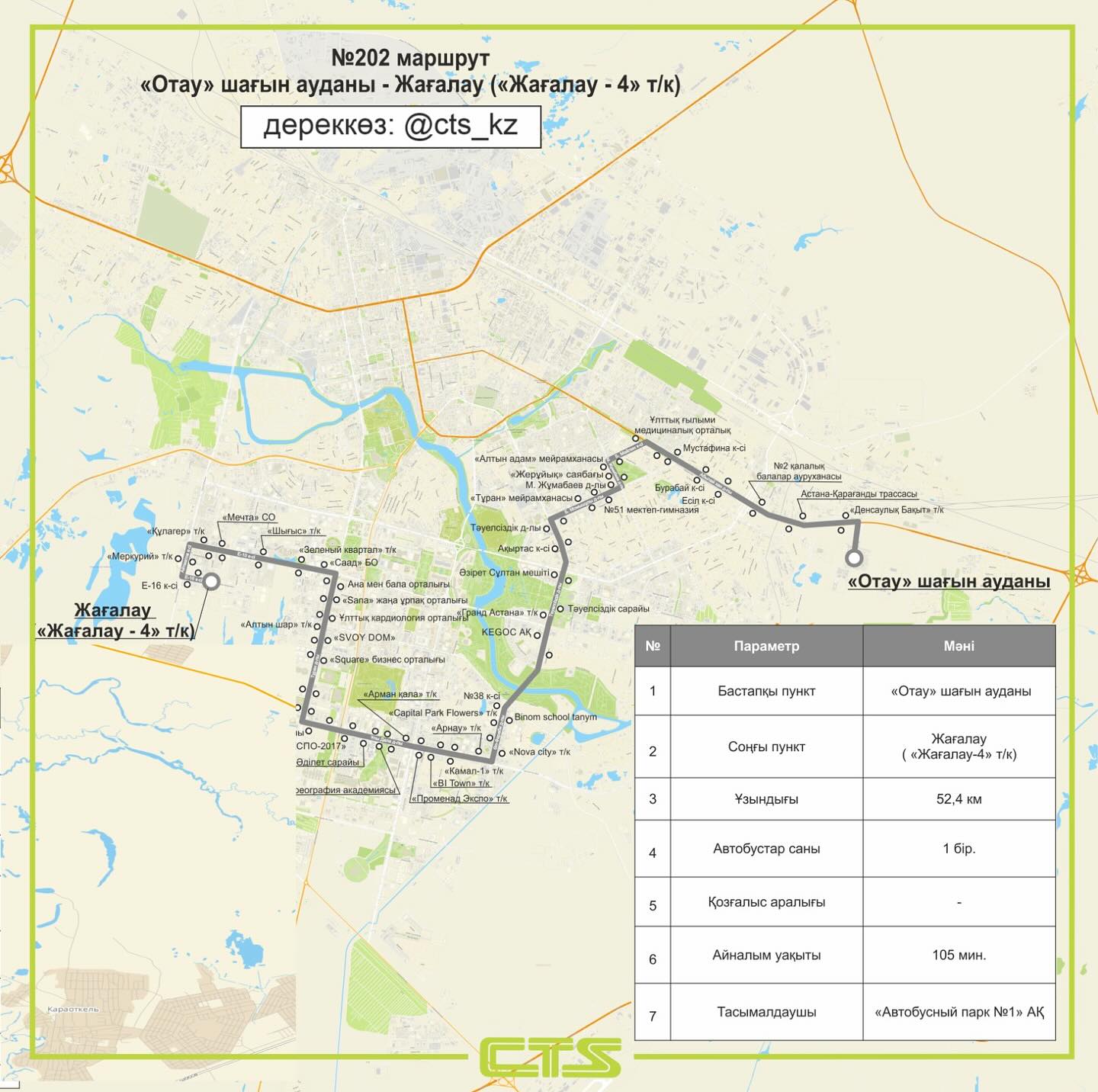 Маршрут № 202: Микрорайон «Отау» - Жағалау;