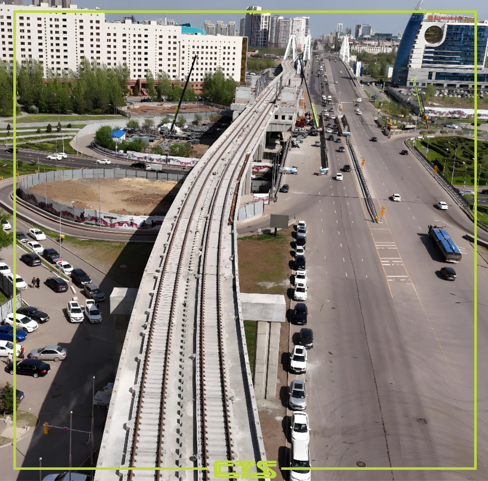 На строительстве линии LRT в Астане завершено 25% работ по устройству верхнего строения пути — проложено 5,6 км из плановых 22,4 км двухпутной линии. На объект доставлена специализированная техника: маневровый тягач, рельсовый экскаватор, бетоносмеситель с насосом, консольный кран и платформы.