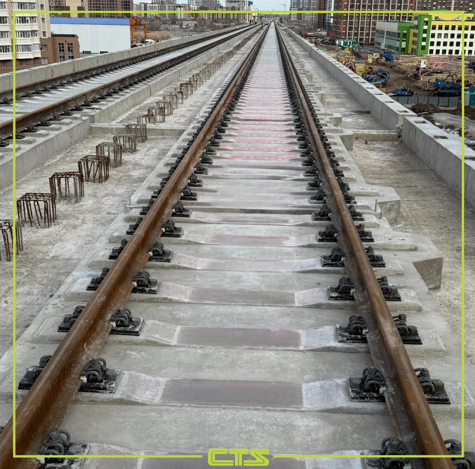 При строительстве применяется инновационная система рельсового крепления DTVII2-1, снижающая уровень шума и вибраций. Преимущества системы — снижение шума до 5–10 дБ, высокая износостойкость и адаптивность к различным условиям.