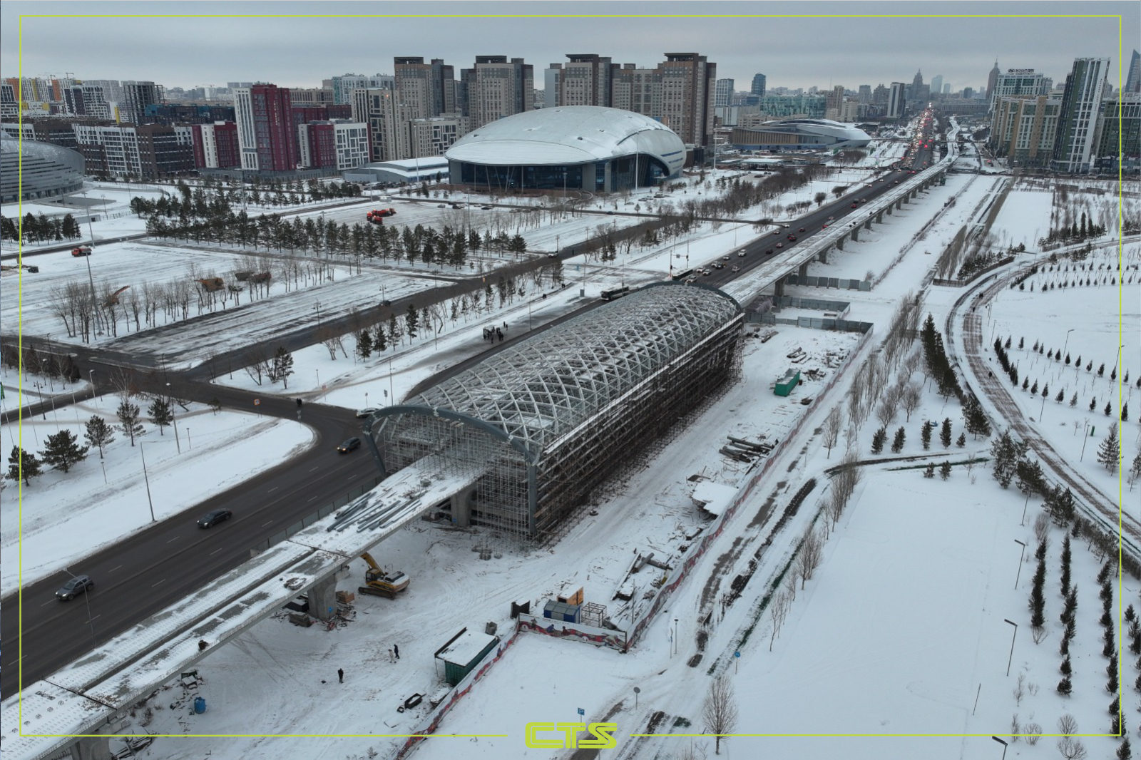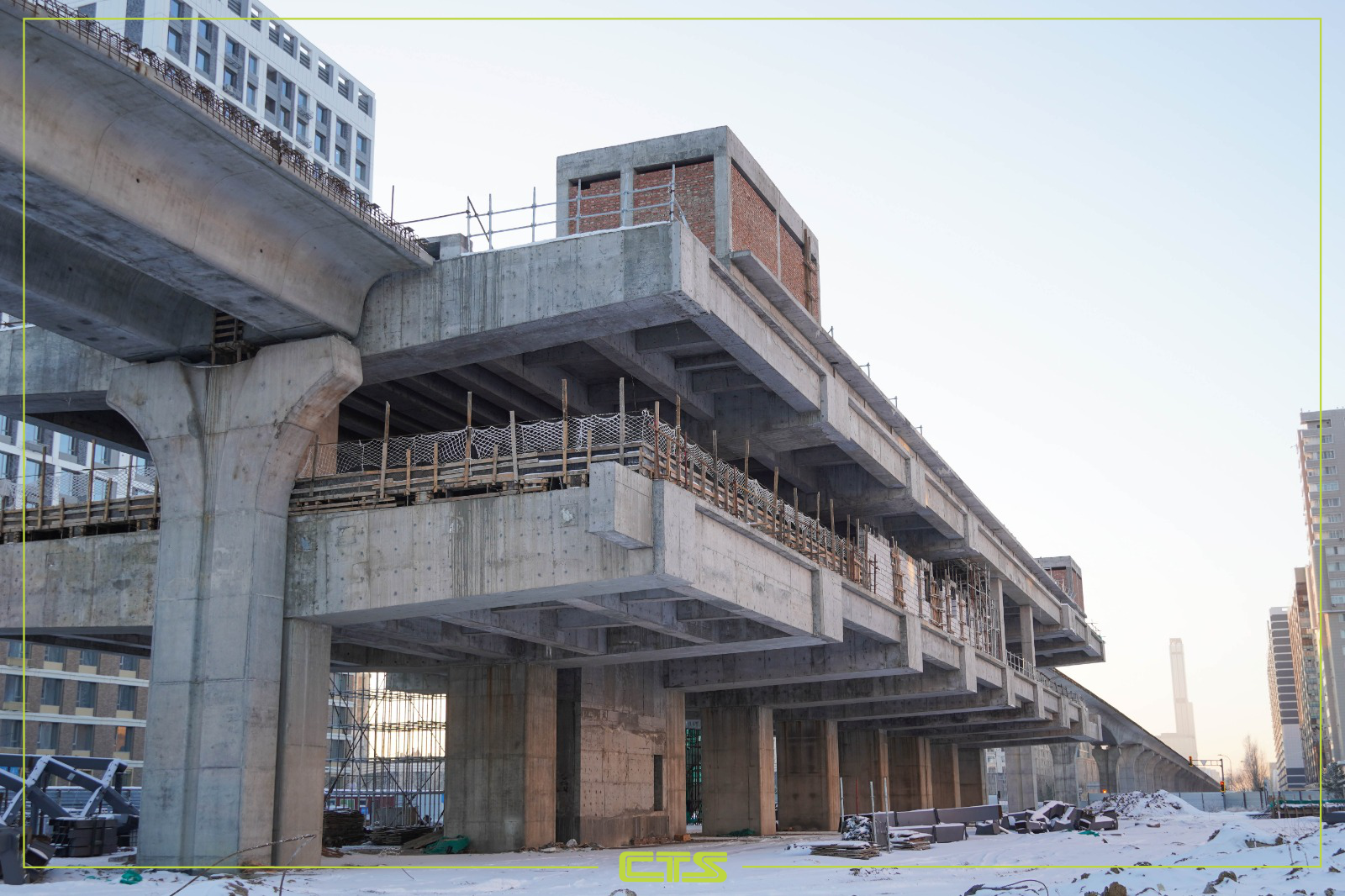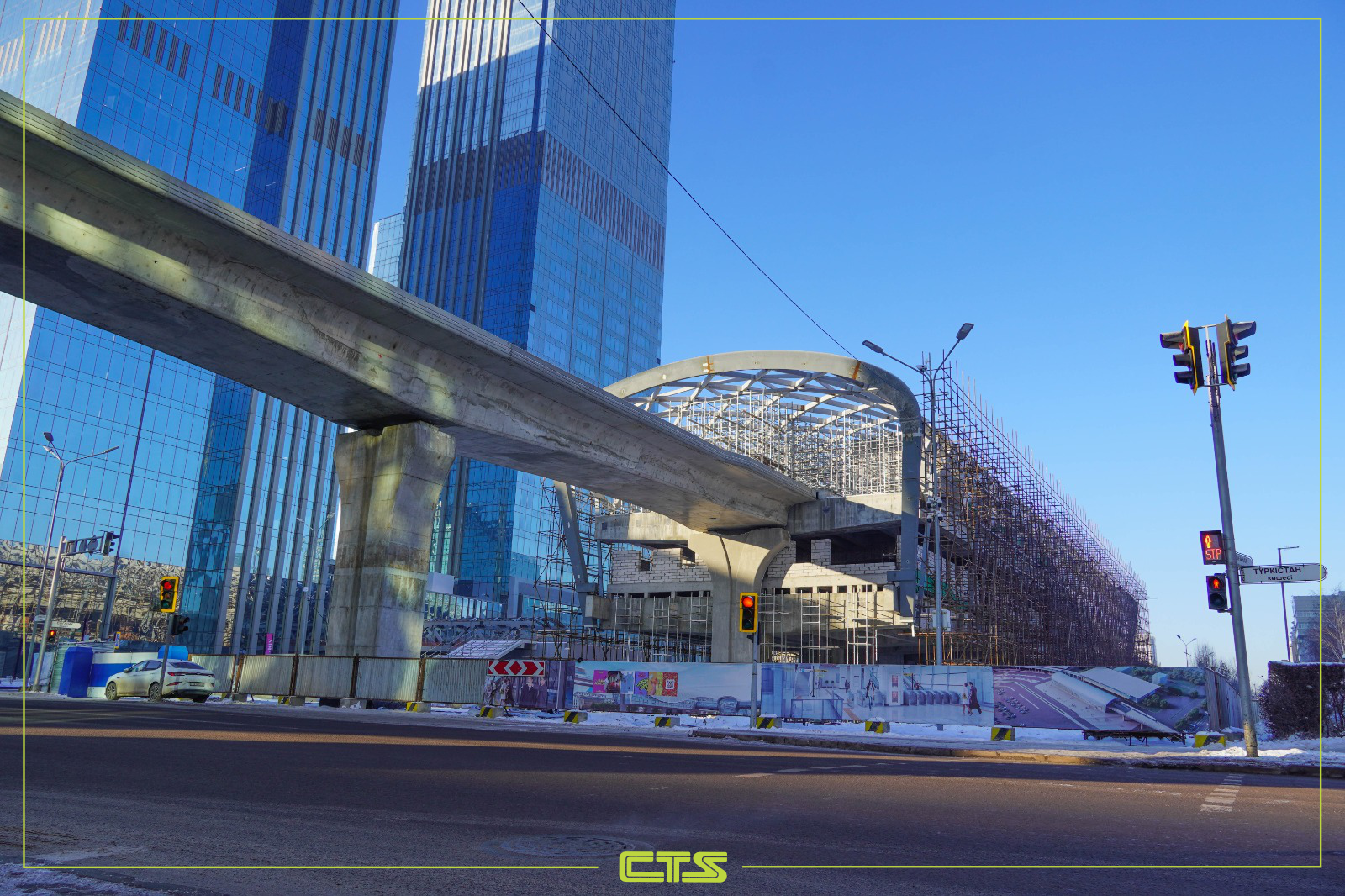 Строительство основных железобетонных конструкций станций линии LRT завершено на 100%. В рамках работ выполнено возведение монолитного каркаса с несущими балками, железобетонных конструкций платформ, ригелей и других элементов. Для этого использовано 79 971 куб. м бетона марки В45 и 9,59 тыс. тонн арматуры.
